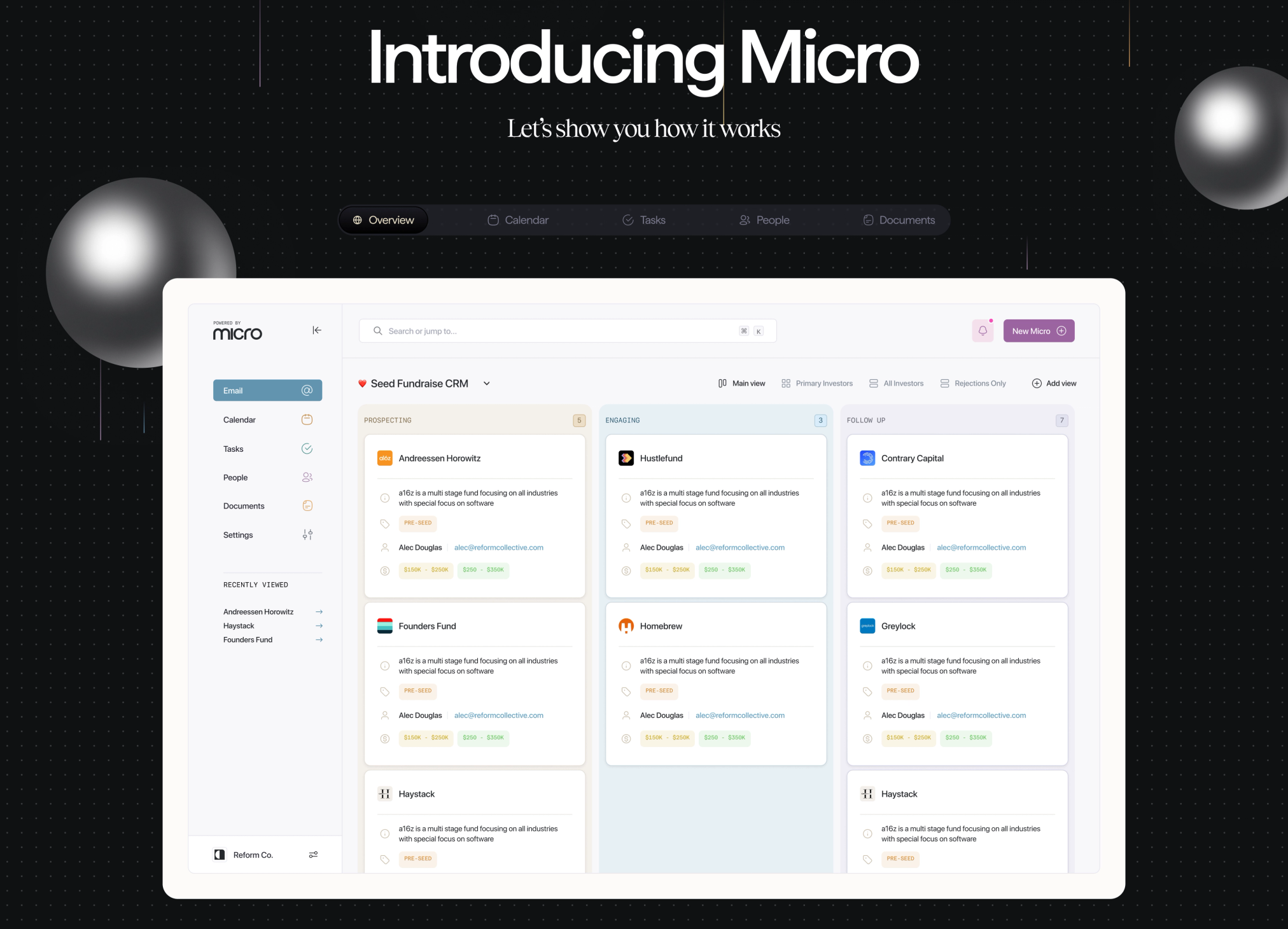 Micro came to us already fans of our work, looking to reimagine how people interact with email. Their mission was bold. Ours was to make it unforgettable. We leaned into the familiar rhythms of SaaS design, then twisted the dials with unexpected visuals, intentional friction, and a brand story you could feel in the UI. The result is a product experience that feels as sharp as the vision behind it.
